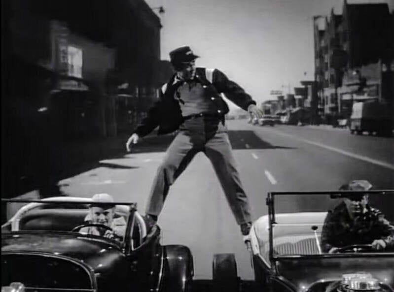 Fortunately, Lt. Merril has a plan to draw Bronc out that has nothing to do with hot rods or drag racing. The plan works, Bronc and Jeff’s stunt doubles duke it out, and Bronc is arrested for vehicular manslaughter.